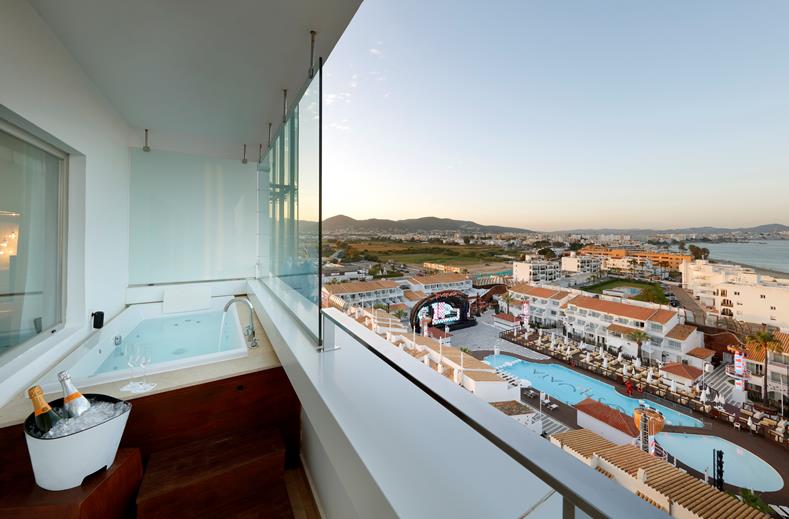 Het ligt centraal aan Playa d’en Bossa, naast strandclubs en op loopafstand van andere venues. Overdag zeilen langs de kust, tegen zonsondergang naar het podium, en later terug naar je balkon met uitzicht op het feest.